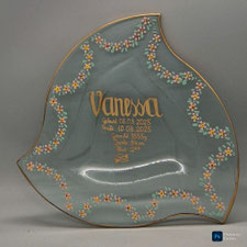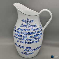 Feinstes Emaille-Geschirr wird liebevoll von Hand bemalt und beschriftet. Der Kunde kann das Muster und auch die gesamte Gestaltung mitbestimmen